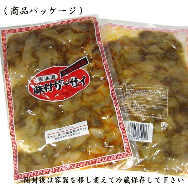 ・原材料 ザーサイ、漬け汁(醤油(大豆・小麦を含む)、植物油(大豆油、ゴマ油)、香辛料)、甘味料(ソルビット、ステビア)、調味料(アミノ酸など)、保存料(ソルビン酸K)、着色料(パプリカ色素)