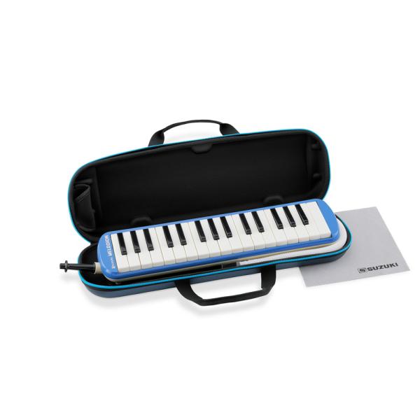 SUZUKI MP-5200B メロディオンケース FA-32B用ケースFA-32B用のケースです。※メロディオン・クロスは別売です。メロディオン旧モデルF-32Bの収納も可能です。【特長】軽いだけではない、セミハードケースの特長と魅力●ケースには、ロッカー収納時に探しやすいネームタグ(反射コーティング)付きFAシリーズで採用しているセミハードケースの特長は、なんと言ってもその軽さですが、もちろんそれだけではありません。ケース横に大きなネームタグが付いているので、ロッカー収納時に自分のメロディオンをすぐに探せます。さらにネームタグには、反射コーティングを施し、登下校時の安全にも考慮しました。●セミハードケースは「カタカタ音」がしないので授業に集中できます!ケースは開くと譜面立てとしてもしっかりと機能するよう設計していますので、卓奏時にも便利にお使いいただけます。また、セミハードケースは机に置いた時に「カタカタ音」がしないので、授業に集中できる、という点も大きな魅力です。【仕様】材質:セミハードケースカラー:ブルー寸法:465×145×54mm重量:280g備考:メロディオンは別売です。