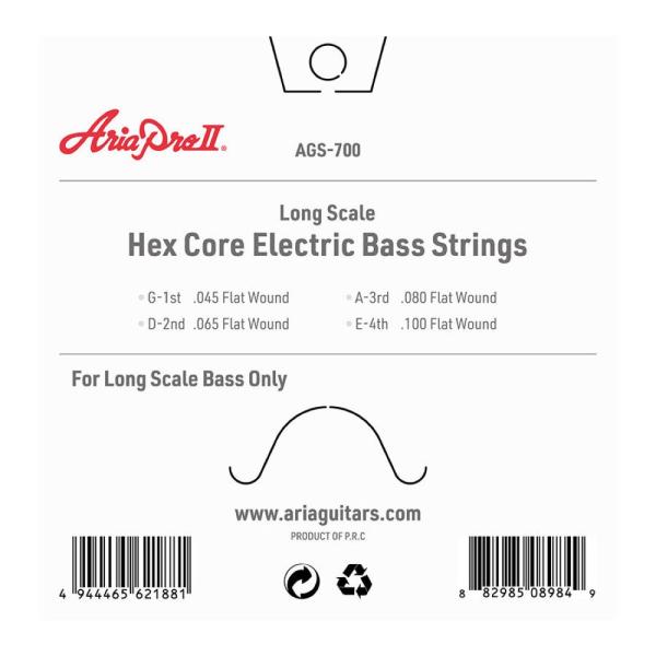 AriaProII(アリアプロII) AGS-700 フラットワウンド エレキベース弦 ハイクオリティな弦をバリュー・プライスで実現したAriaproII/Aria弦。 ステンレススチール、フラットワウンド、ロングスケール .045/.065/.080/.100 ※ミディアムスケール、ショートスケールのベースには使用できません。ご注意下さい。 1セットでの販売です。