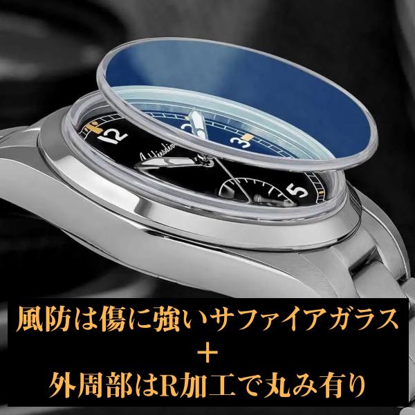 ■風防の材質は、高級腕時計に使用されるサファイアガラス(ARコーティング付き)を採用。傷が付きにくい等の特徴があります。