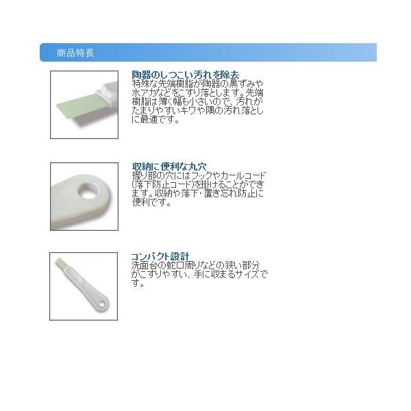 特殊な先端樹脂が陶器の黒ずみや水アカなどをこすり落とします。