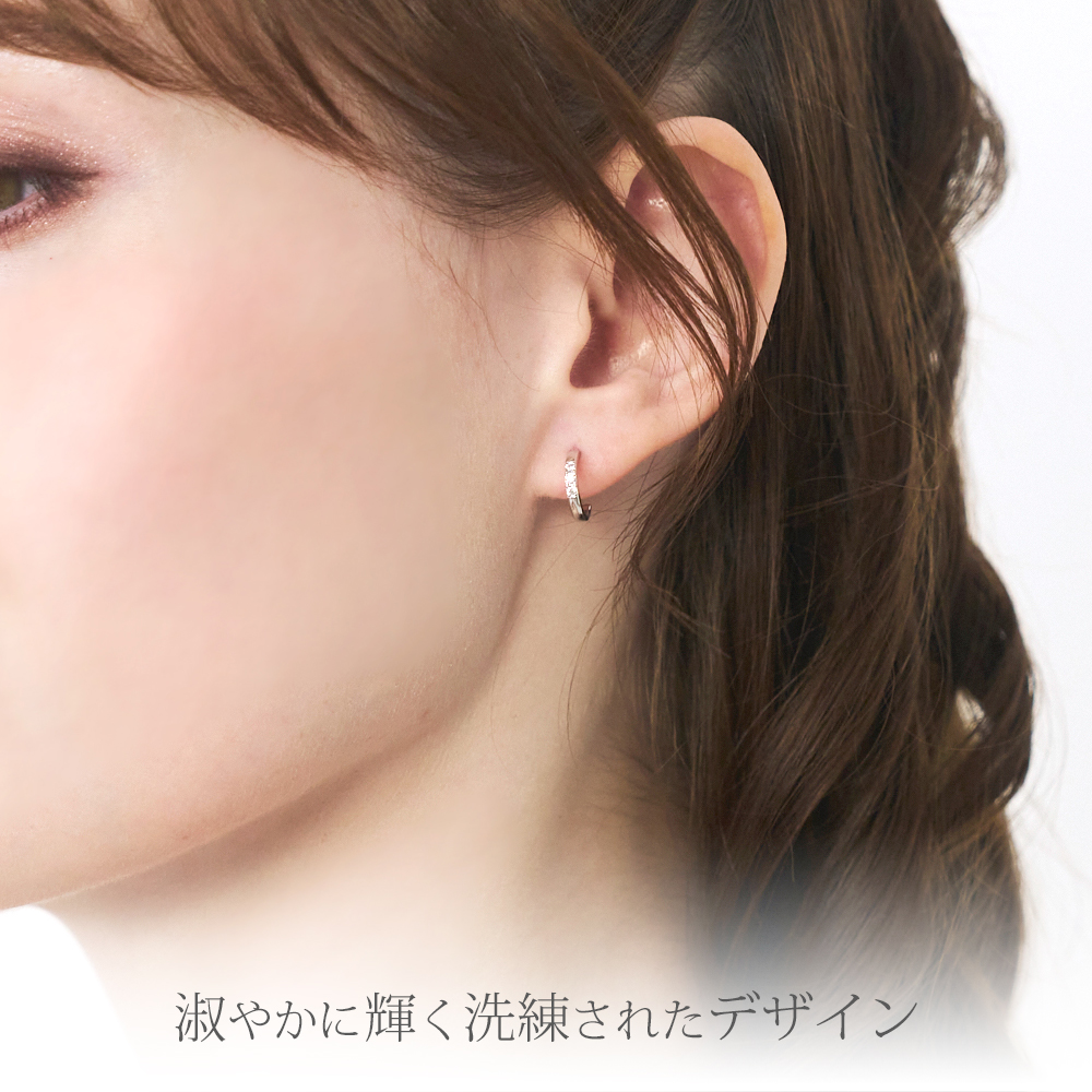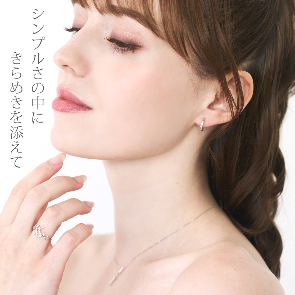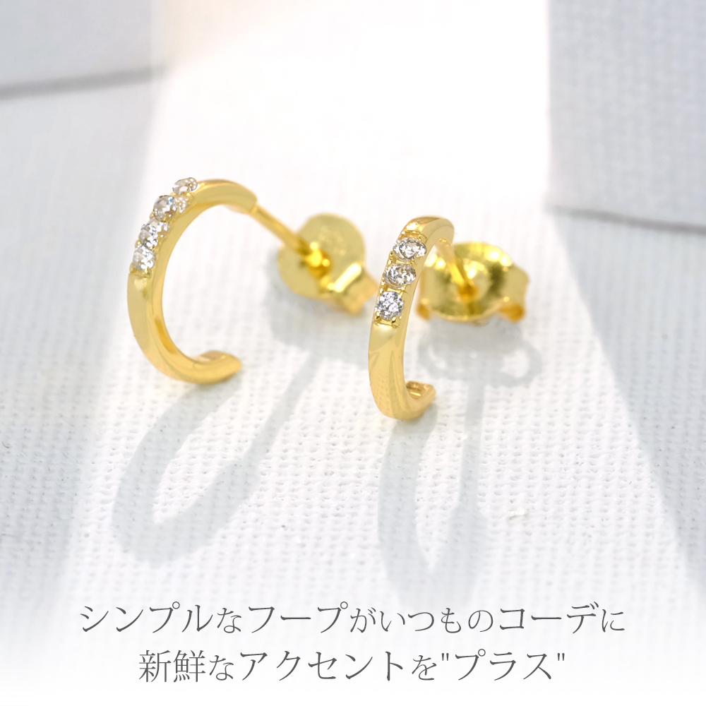 控え目なサイズ感で耳に寄り添うシンプルなフープピアス。