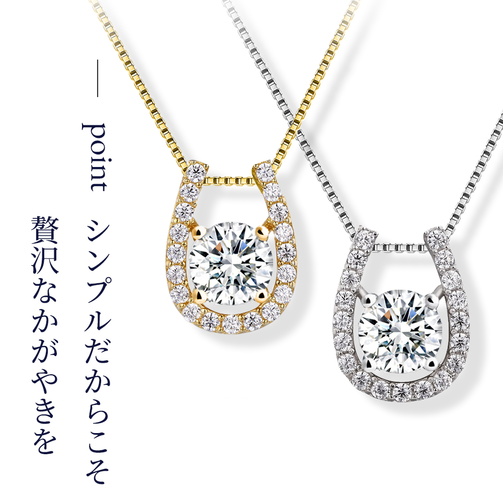 馬蹄 ネックレス レディース 40 50 60代 シンプル 18k ゴールド プラチナ 仕上 普段使い プレゼント 女性 スワロフスキー リズ