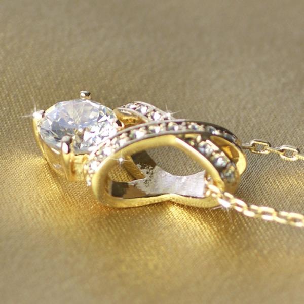 ネックレス レディース 40 50 代 18k ゴールド プラチナ 仕上 普段使い アレルギー対応 プレゼント 女性 スワロフスキー リボン