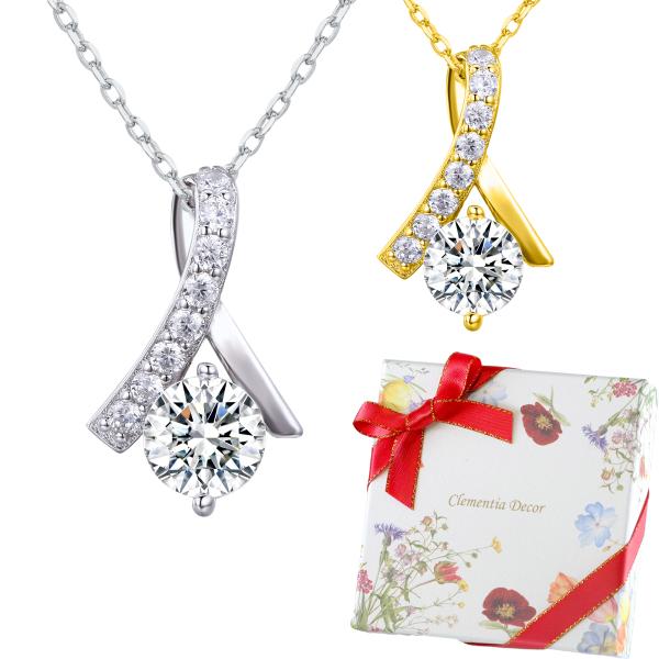 ネックレス レディース 50 40 20代 18金 仕上 シンプル スワロフスキー CZダイヤ 誕生日 クリスマス プレゼント 女性 ギフト 60代 30代 リボン _B