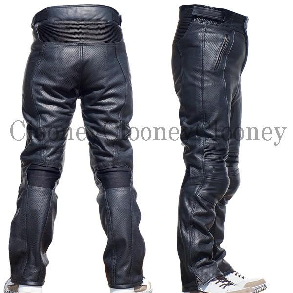 Clooney パンチング レザーパンツ MP02 本革 牛革 メンズ 膝カップ入 メッシュ ブーツアウト バイクパンツ おすすめ クルーニー