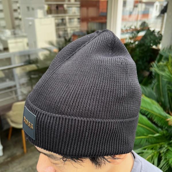 ボス BOSS ニット帽 メンズ ビーニー ニットキャップ ウール ロゴラベル ブラック Foxxy R Hat
