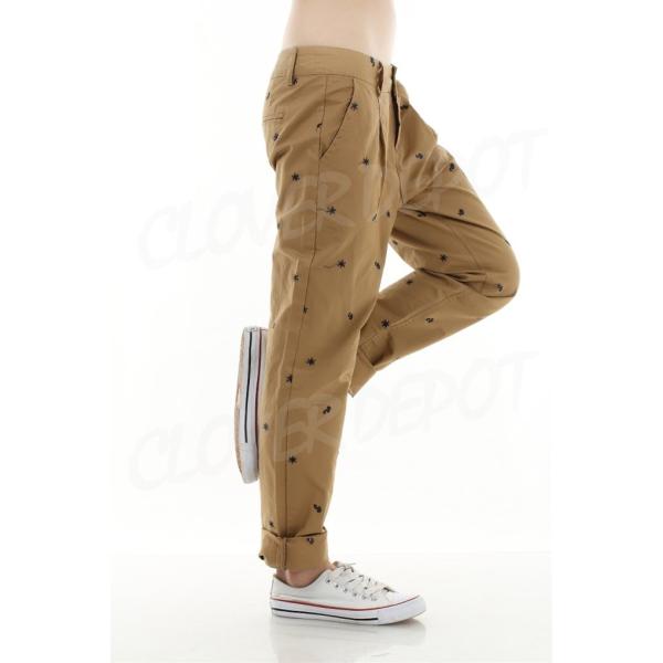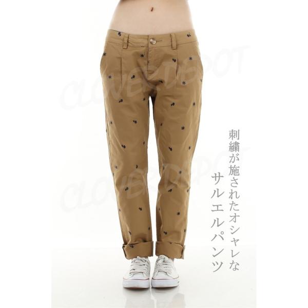 チノパン レディース ゆったり 美脚 ストレート おしゃれ ボトムス かわいい ロング パンツ スリム カジュアル サルエル ズボン 10分丈 ドット 刺繍 アウトドア