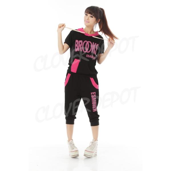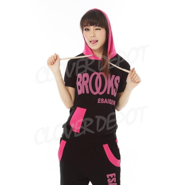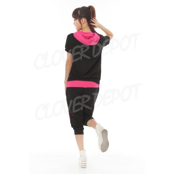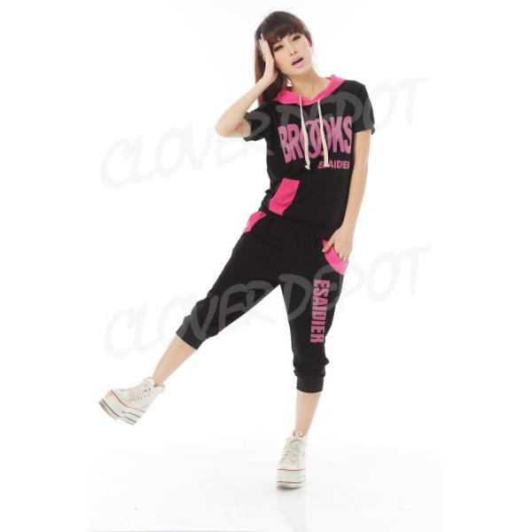 商品名:セットアップ レディース ルームウェア おしゃれ スウェット パンツ トップス 上下セット 半袖 夏 7分丈パンツ 薄手 Tシャツ パーカー フード付き 運動 ダンス