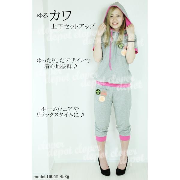 商品名:セットアップ レディース ルームウェア おしゃれ スウェット パンツ トップス 上下セット 半袖 夏 7分丈パンツ 薄手 Tシャツ パーカー フード付き 運動 ダンス