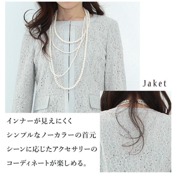 ノーカラージャケット と スカート の 2点セット 総レース仕上げ ウォッシャブル セットアップスーツ で コーディネート も 楽ちん ♪