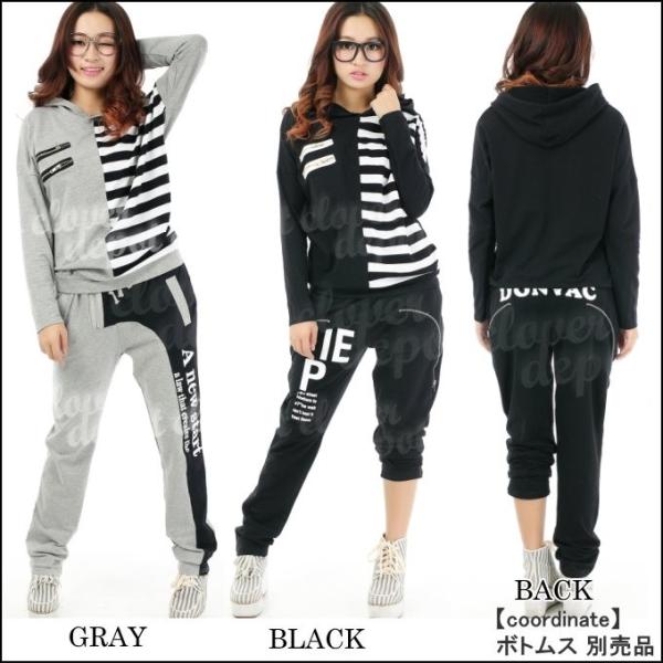 商品名:パーカー レディース おしゃれ レディースパーカー かわいい スウェット オシャレ トップス Vネック プルオーバー 長袖 無地 ボーダー ブラック 黒 春 秋