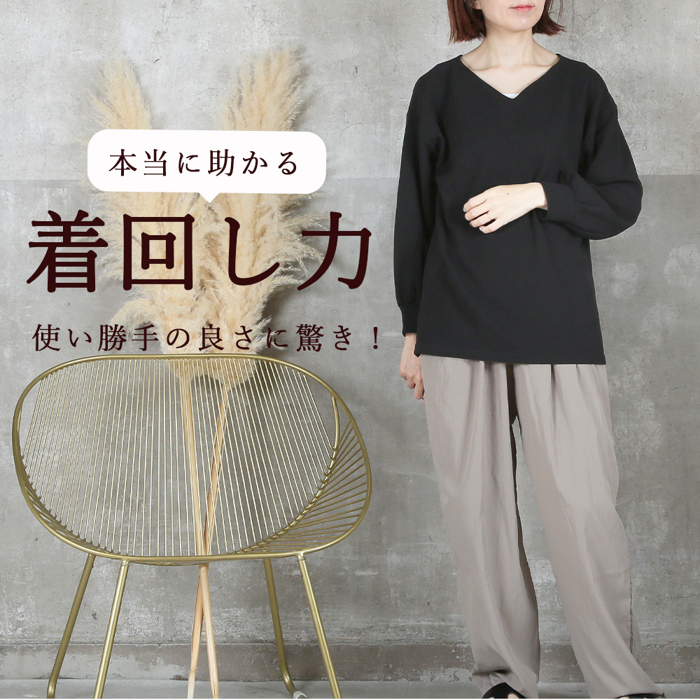 ■ゆったり目の袖はリブ付きで家事で袖を上げたいときもらくちん。