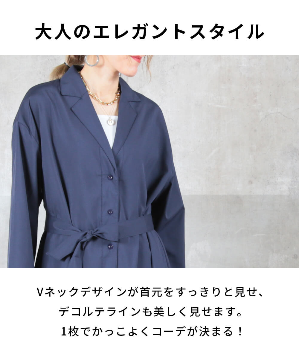 ボタン 襟付き Vネック ロングシャツ チュニックワンピース