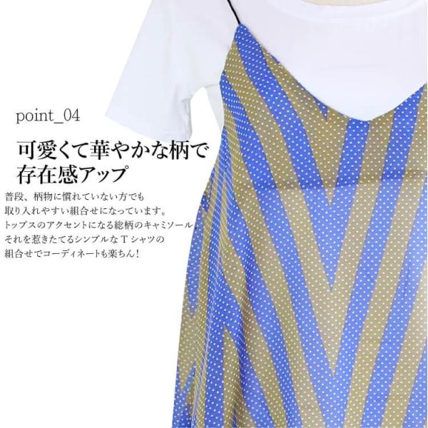 ■シンプルTシャツと柄キャミソールの王道組合せでおしゃれに体形カバー♪
