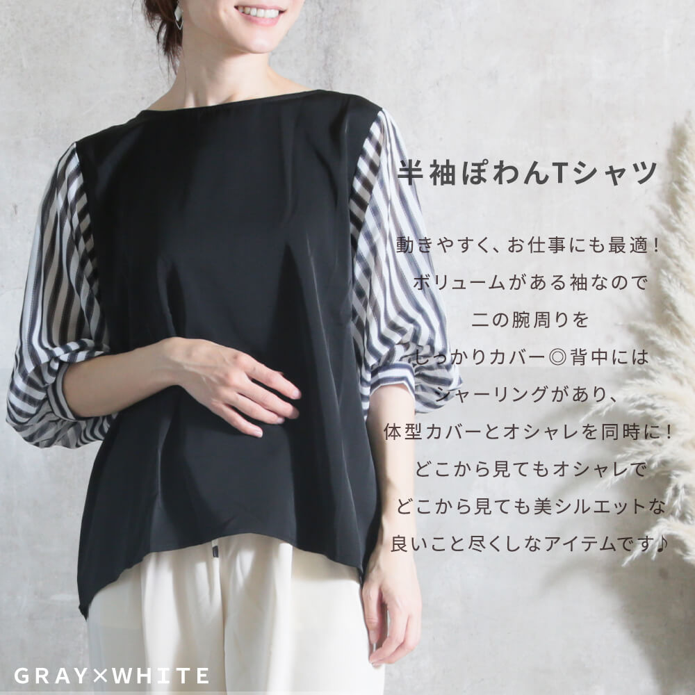トップス シャツ レディース 春 夏 半袖 バルーン袖 ボリューム袖 袖コンシャス ぽわん袖 ポワン袖