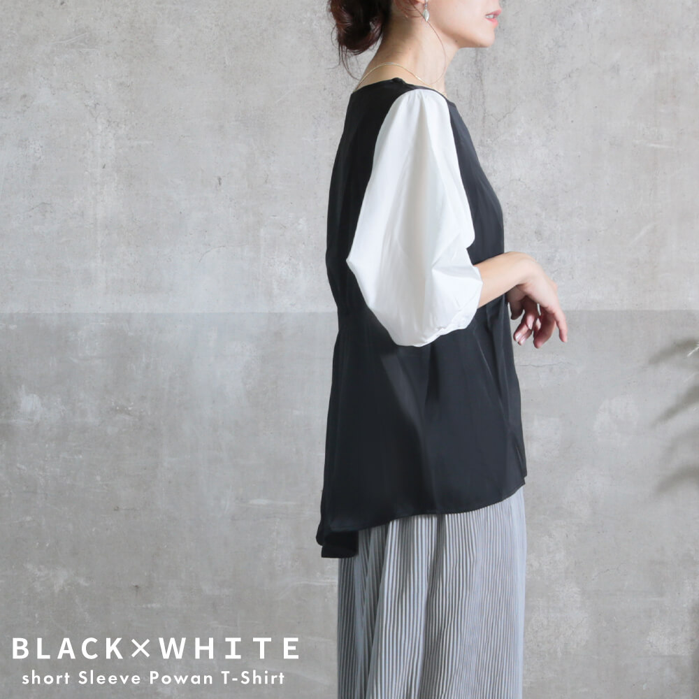 商品名:トップス シャツ レディース 春 夏 半袖 バルーン袖 ボリューム袖 袖コンシャス ぽわん袖 ポワン袖