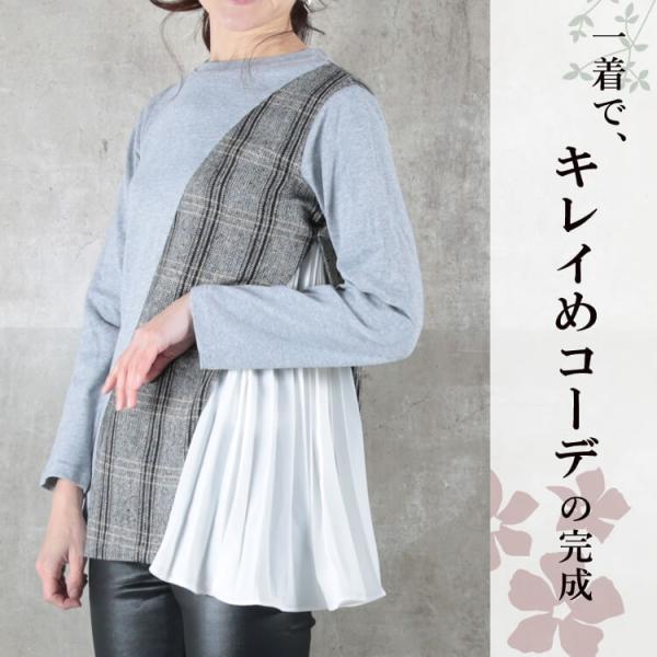 ロングtシャツ レイヤード ロンt レディース 長袖 M L 2L カットソー トップス 重ね着 サイド スリット ラウンドヘム 裾スリット
