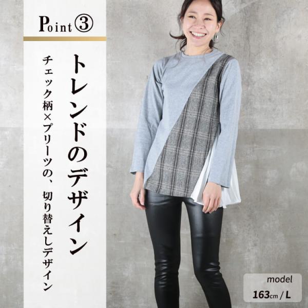 ポイント チェック との 切り替えし になっている 長袖 Tシャツ 春夏秋冬 オールシーズン で