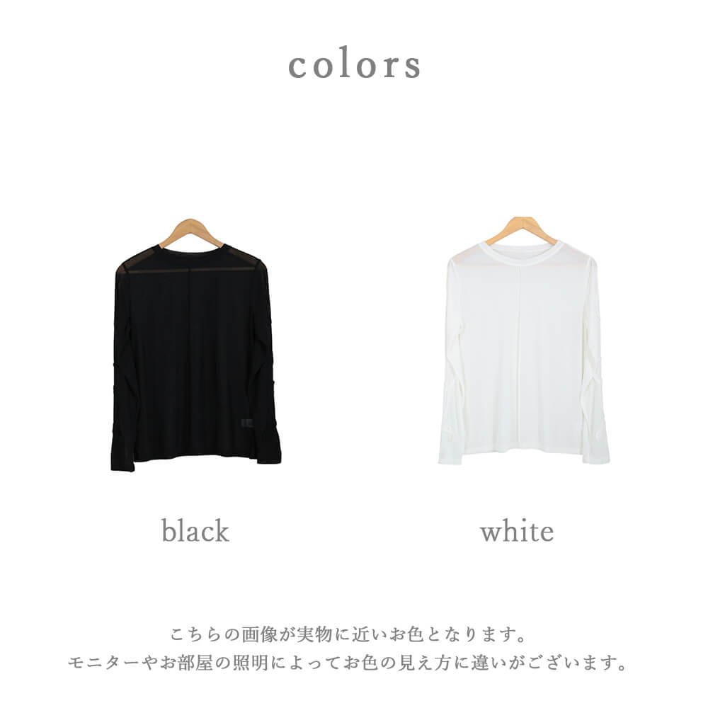 商品名:シースルー トップス シアー カットソー 長袖 重ね着 透け感 インナー メロウハイネック tシャツ レディース 春夏 黒 白 カットソー チュニック 無地 きれいめ ハイネック 透け チュール ブラック ホワイト ゆったり ロンt オフィス