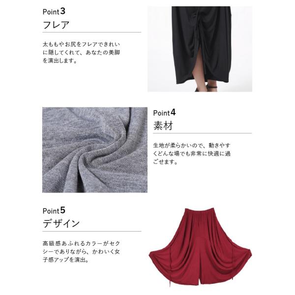 商品名:フレアパンツ レディース ダンス ワイドフレアパンツ ガウチョ ロング ヨガ コーデ スカーチョ スカンツ ワイドパンツ マキシ 春夏 無地 ウエストゴム 薄手 黒
