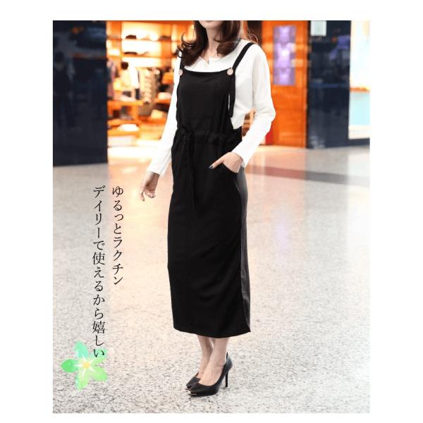 商品名:サロペット レディース 夏 おしゃれ ゆったり スカート スリット 黒 オールインワン オーバーオール タイト ロング キャミ 無地 ポケット ロングスカート