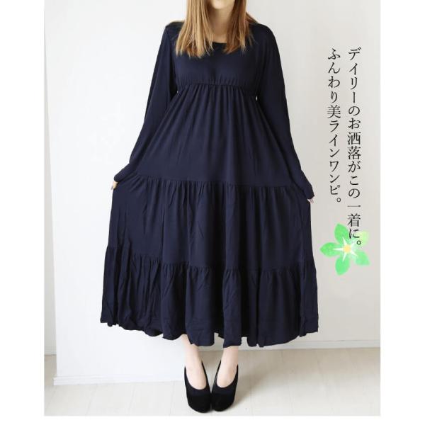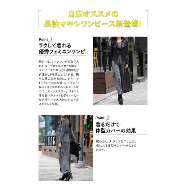 ワンピース レディース カジュアル きれいめ きれい Tシャツ ゆったり シンプル おしゃれ 夏 春夏 薄手 長袖 丸襟 黒 マキシ ロング ギャザー 2タイプ リボン