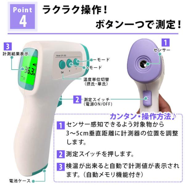 即納 送料無料 国内発送 非接触温度計 赤外線温度計 温度計 電子温度計 非接触 非接触型 スピード測定 1秒測定 操作簡単 温度測定 高速 測定 電池式 軽量 赤外線 センサー データ デジタル 簡単ワンタッチ 遠赤外線センサー 高精度 精密プローブ 早い 衛生的 電池式 衛生的 デジタル温度計 測定温度計 企業 安全 衛生的 電池式 自宅用 会社用 学校用 企業用 商店 地下鉄 バス 学校 家庭 企業 塾 検査 観察 単位切替 摂氏 華氏 料理 ミルク 哺乳瓶 沐浴 お風呂 1-2秒にスピード測定 ワンタッチ パープル グリーン グレー 軽量