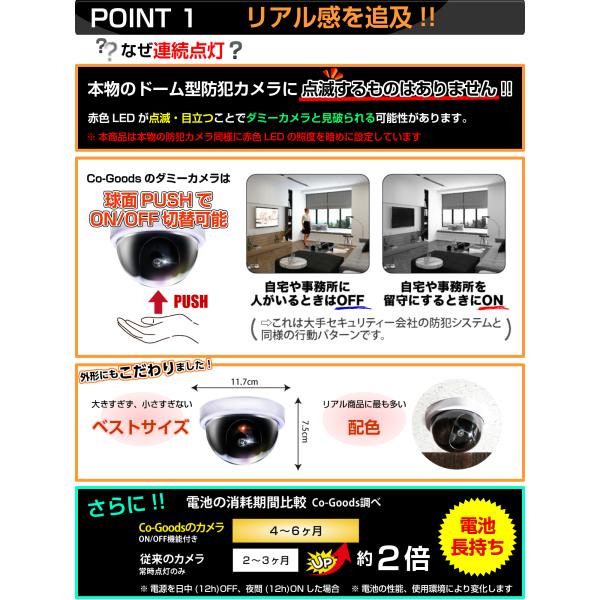◆本物の 防犯カメラ 設置と比較し、低コスト&設置の手間がかかりません。オリジナル取付ガイドシート付属ですので老若男女どなたでも簡単に取付が可能です!長寿命赤色 LED を使用しております!