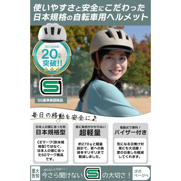 【SG認定】 自転車 ヘルメット 【超軽量270g x 着脱式バイザー付き】大人 サイズ調整可能 57-61cm 学生 通勤 通学 SG規格 SGマーク sg レディース メンズ