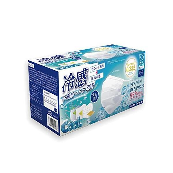 マスク 冷感 不織布 ふつう 夏用 使い捨て 99% カット ヒロ・コーポレイション 接触冷感 ホワイト ピンク 50枚 パッケージ変わりました