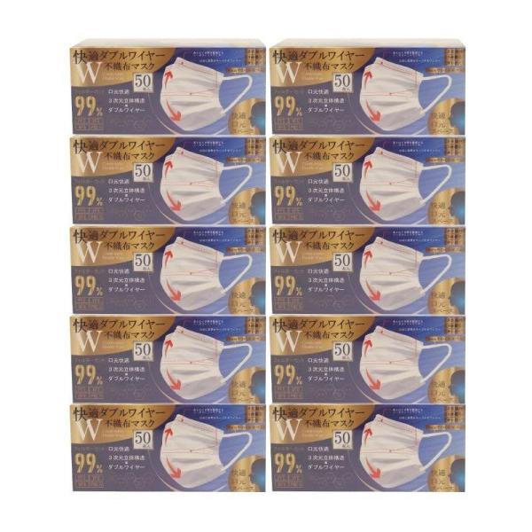 爆買 快適 ダブルワイヤー不織布マスク 50枚入×10個(合計500枚入り) ふつうサイズ ホワイト 3次元立体構造 ヒロコーポレーション