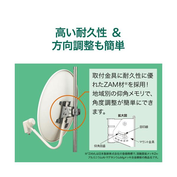 地域別の仰角目盛付きで設置も簡単。屋外での耐久性を重視しつつ、家庭用から集合住宅まで幅広く対応できます。