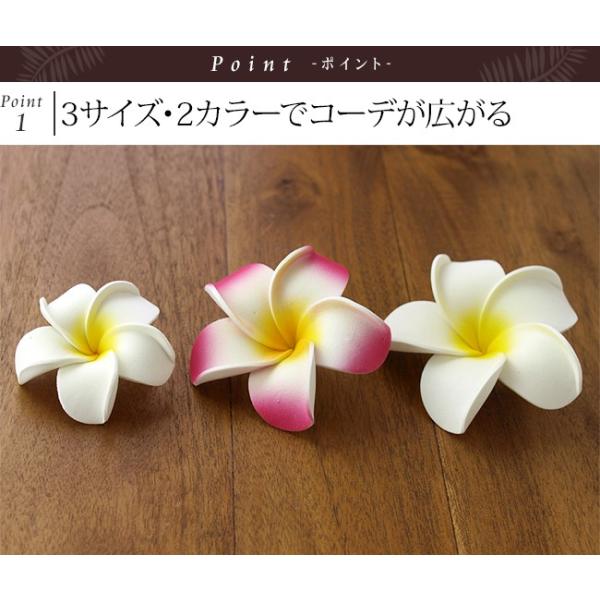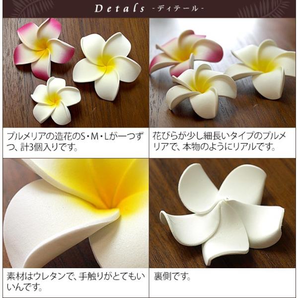プルメリアの造花(リアル)のS・M・Lが一つずつ、計3個入ったお得なセット。
