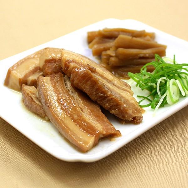 【らふてぃ】豚バラ肉、ゴボウ、しょうゆ、砂糖類(上白糖、黒砂糖)、でん粉、おろし生姜、長ねぎ、地下浸透海水、(一部に小麦・豚肉・大豆を含む)