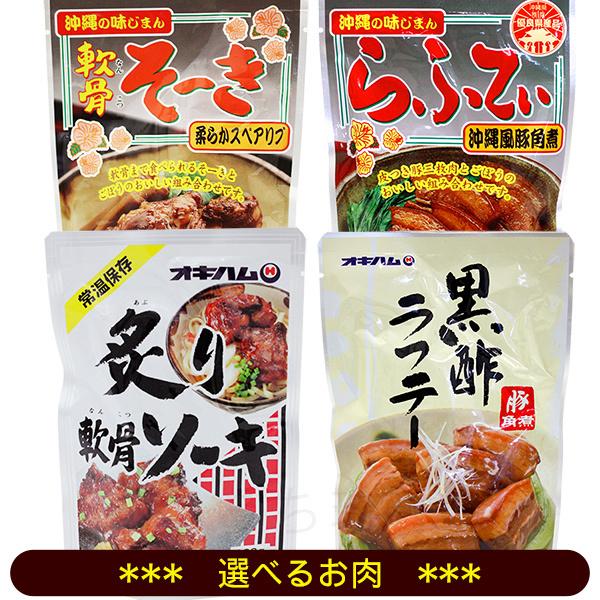 ■内容量:沖縄そば160g(めん70g×2束、調味料10g×2袋)、まぜこみじゅーしぃの素60g(1合炊き用)、選べるお肉(軟骨ソーキ165g、らふてぃ165g、黒酢ラフテー180g、炙り軟骨ソーキ160gよりどれか1つ)