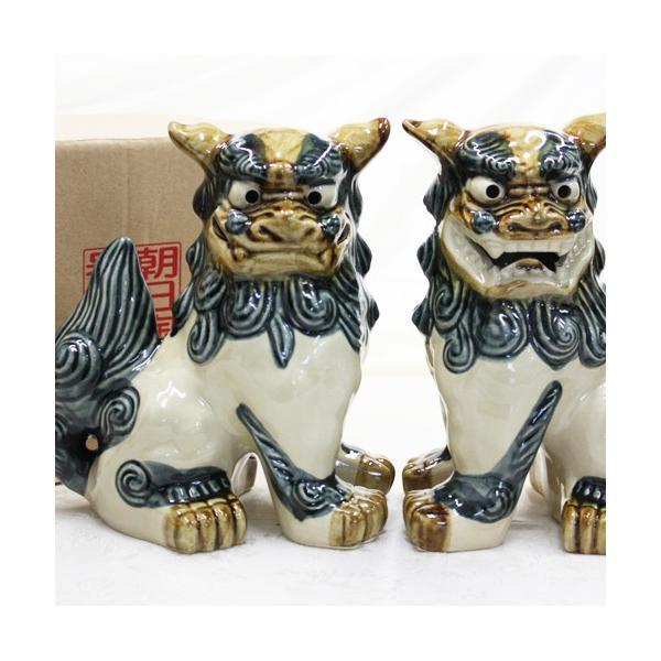 /シーサーの置き方 屋外 やちむん 沖縄お土産 つやつや 置物 魔除け 厄除け 守り神 ペア 朝日陶器/