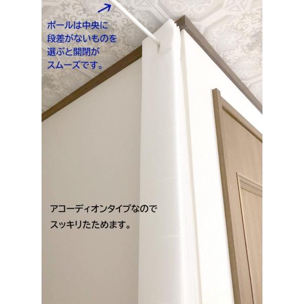 ※突っ張りポールは商品に付属しておりません、市販のものをお使いください。 突っ張りポール通しの穴は直径約2.5cmまで対応しております。ポール中央部分に段差の少ないタイプ(サイズ)ですと開閉がスムーズになります。