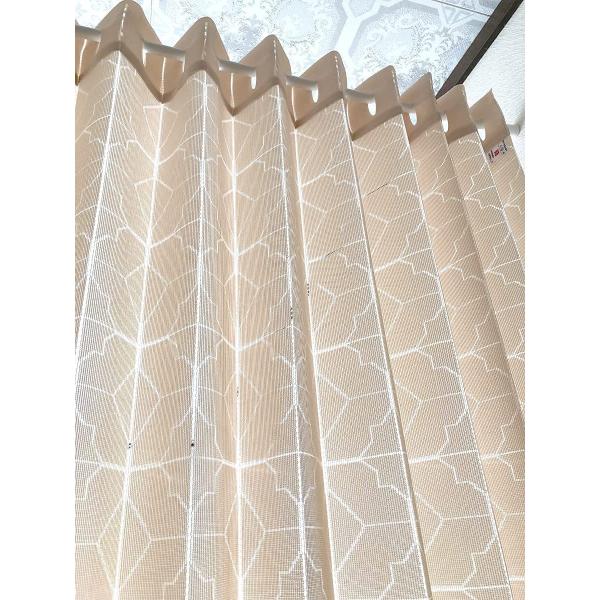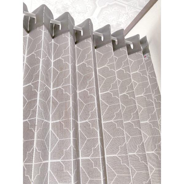 おしゃれなライン調キカ柄で比較的厚手のレースの生地ですが程よい透け感があり圧迫感が少ない仕様になっております。