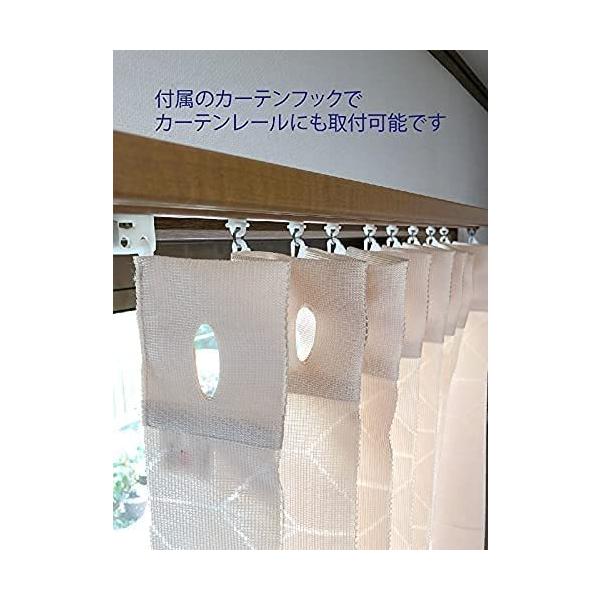 ※カーテンフックは11個付属しておりますが突っ張りポールは商品に付属しておりませんので市販のものをお使いください。 突っ張りポール通しの穴は直径約2.5cmまで対応しております。ポール中央部分に段差の少ないタイプ(サイズ)ですと開閉がスムーズになります。