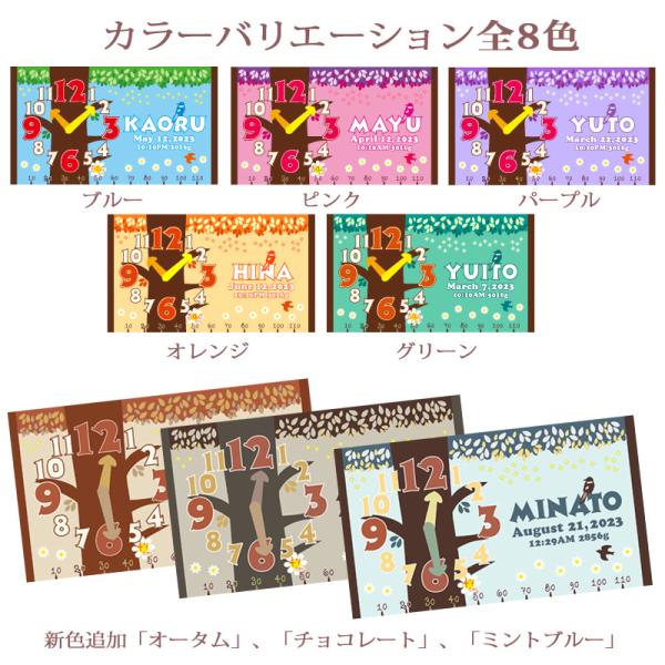 アナログ時計が生まれたときの時間を表示!森にすむ小鳥たちと大きな時計の木のイラストがかわいい♪