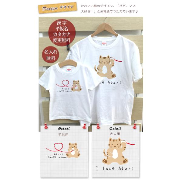 Tシャツ 親子ペアルック ブランド パジャマ ベビー キッズ 子供服 名前入り 名入れ 父の日 ギフト プレゼント 動物 糸電話 ネコの親子