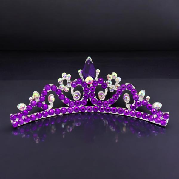 フェルト製ティアラ 新体操髪飾り ティアラ ストーン付き フェルトティアラ ダンス髪飾り 衣装髪飾り 紫 バイオレット