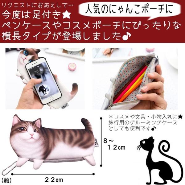 【即納】【メール便送料無料】にゃんこポーチ 横長タイプ★猫 フェイス ポーチ ねこ ネコ 顔 小銭入れ 大容量 ペンケース 筆箱 コスメポーチ