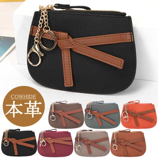 【本革】【メール便送料無料】リボン コインケース 小銭入れ ポーチ ミニウォレット バッグチャーム 牛革 キーケース キーリング 牛皮 小物入れ ブランド