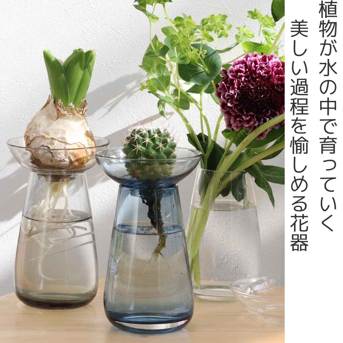 植物が水の中で育っていく美しい過程を愉しめる花器