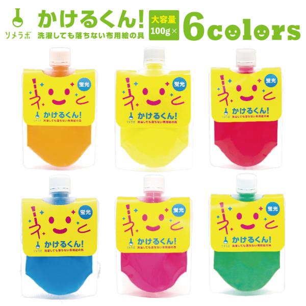 布用絵の具 かけるくん 100g 【基本8色・蛍光6色】 乾かすと洗濯OK 消しゴムハンコのスタンプインク 混色OK 硬くならない布用塗料