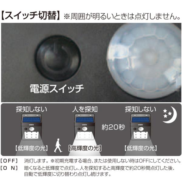 夜間に人を探知して明るく点灯 ソーラーウォールライト