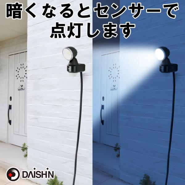 人感 センサーライト コンセント式 屋外用 防犯ライト 大進 DLA-17T200 LED AC 100V 電源 外灯 外 防水規格 防雨型