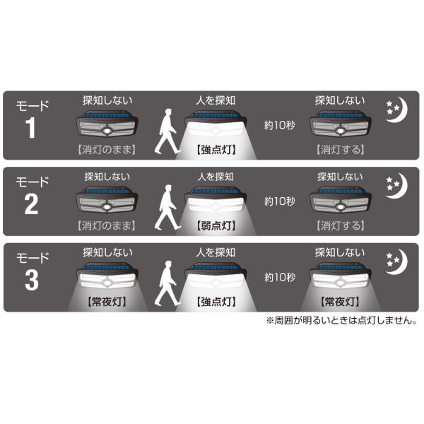 2個セット 人感 センサーライト ソーラー ライト 屋外 led 防犯 DLS-WL010 ソーラー 防水規格 防雨型 LED ガレージ 玄関灯 高輝度